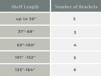 Many shelves need more than two brackets for enough support. For shelves longer than 36" we recommend three or more. Check out our guide for more info